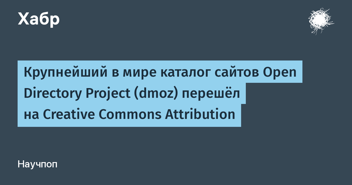 22 июня в 4 часа утра на сайте dmoze.ru появилась информация, что у легендарного проекта Open Directory Project или dmoz теперь новая лицензия — Creative Commons Attribution 3.0 Unported. Так и вышло оказалось — на странице dmoz.org/license.html указана CC-BY. Но! Ни на одном сайте в Интернете, по которым ищет Google, больше новостей нет. Наверное, все спят. И это не старая новость — в кэше Яндекса старая лицензия.