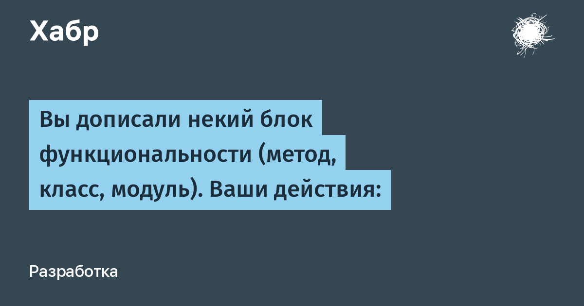Вы дописали некий блок функциональности (метод, класс, модуль). Ваши действия: