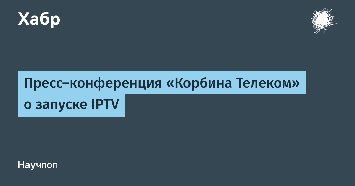 @CKA27 июл 2007 в 17:10Пресс-конференция «Корбина Телеком» о запуске IPTVВремя на прочтение1 минОхват и читатели695Чулан В продолжение топика «Корбина Телеком» объявляет о запуске IPTVТеги:орбинаCorbinaIPTVTVТВХабы:Чулан