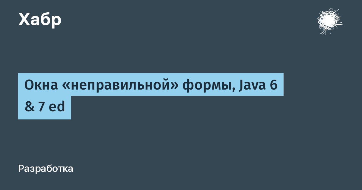 И вот в этот понедельник промелькнула статья «Окна «неправильной» формы», снова обратившая моё внимание к этой теме. Ожидая узнать, что в .NET для этих целей реализованы функции-обёртки WinAPI, был разочарован, увидев описания внешних функций. И тут я, как программист в основном на Java, вспомнил, что, тогда ещё Sun, обещал ввести функции для отрисовки окна произвольной формы.