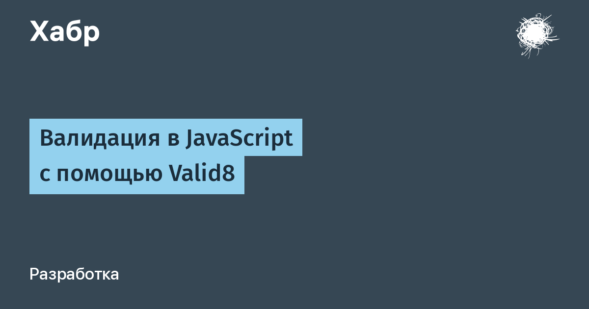 Часто приходится «насыщать» интерфейсы с помощью JavaScript. В основном работаю через jQuery, всё нравится, но одна беда – валидация. Постоянно приходится изобретать «велосипед», искать в сети обрывки кода; а ведь хочется написать пару строчек без углубления в детали. Радость не заставила себя ждать: нашёл библиотеку Valid8 (произносится как validate), и, наконец, решил проблему написания кода валидации.