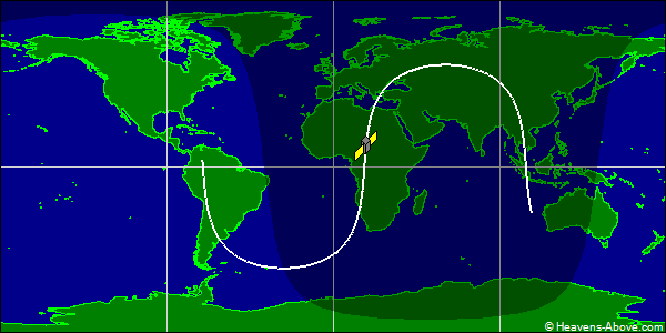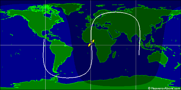 Тут как раз возникает понятие GDOP (Geometric Dilution of Precision). Если все видимые спутники находятся в зените, то очень хорошо вычисляется высота, зато очень высокие погрешности по горизонтальным координатам. Если спутники над горизонтом — то наоборот, по x и y легко получить высокую точность, а по высоте уже похуже. Но при этом возникает другая проблема — сигнал может отражаться от земли, а понять, отражённый ли сигнал попал на антенну — нетривиальная задача. Но тут всё решается за счёт того, что спутников много, и в средних широтах и южнее их одновременно видно много. Собственно, как раз именно тут и сказывается улучшение геометрии созвездия при использовании ГЛОНАСС: у спутников GPS наклонение орбиты 55 градусов, а у ГЛОНАСС — 65 градусов. Вот картиночка с проекцией орбиты одного из спутников GPS: