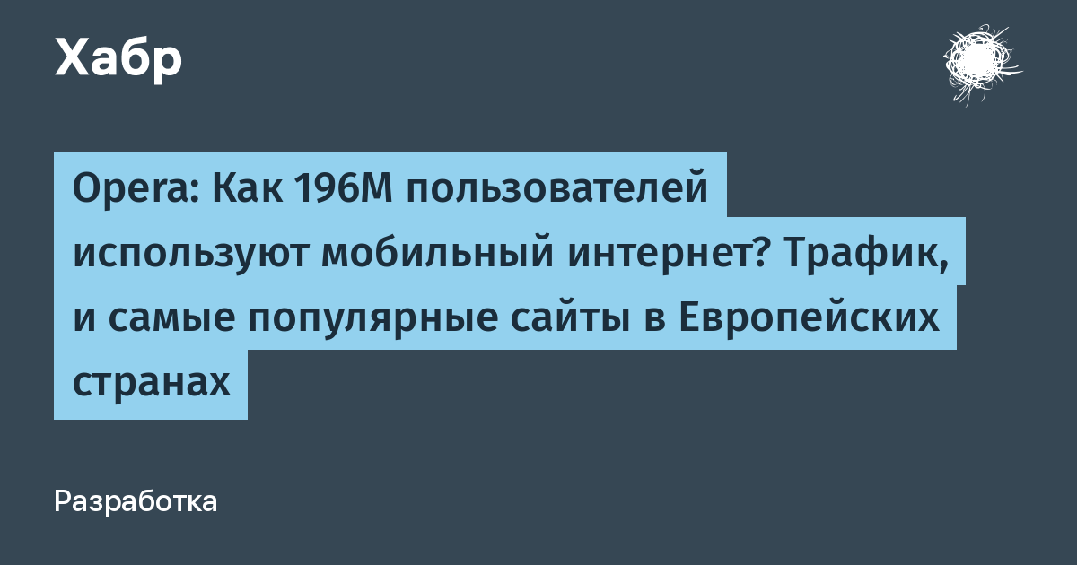 Этот месяц богат содержательными отчётами (в частности, о трендах в сети, и будущем мобильных платформ ). Теперь, как раз в тему, Opera выпустила свежий отчет State of Web (предыдущий выходил в апреле), где рассказывает об использовании интернета с мобильных устройств, и включает список 10 самых популярных сайтов для большинства европейских стран.