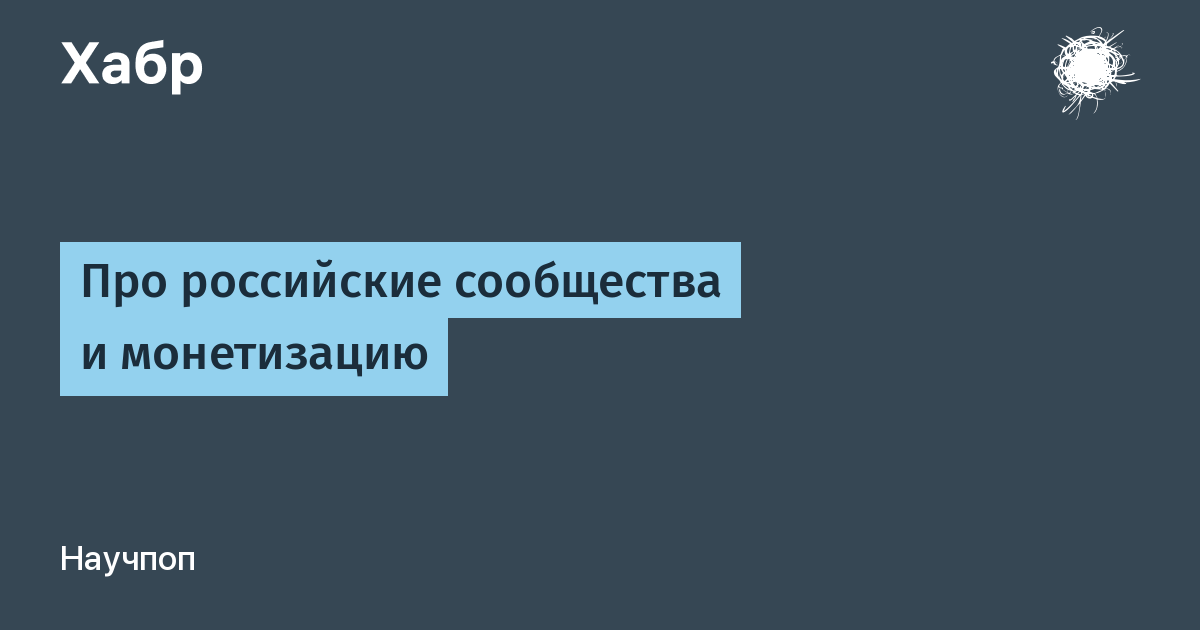 Поэтому в России говорить о «community building» ошибочно, у нас сообщества самоорганизующиеся, их никто не строит, они сами появляются там, где есть ПОДХОДЯЩЕЕ место. Монетизация в сообществах так же носит характер подстройки к пользователю: площадку ему дали бесплатно, а туалет – за монету, стены – бесплатно, а тепло – за монету, квартира ��� дело ваше, а расклейка агитплакатов в парадной – дело жека. И отношение со стороны коммьюнити к услугам администрации примерно такое же, как у обычных людей к ЖКХ.