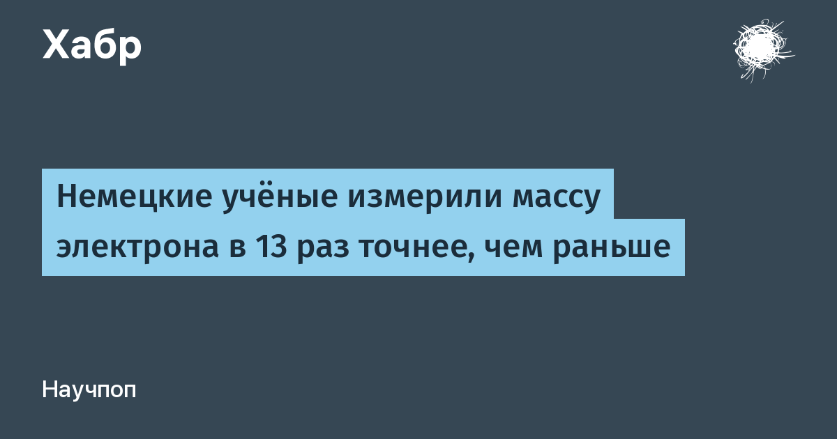 Электрон — первая известная человеку элементарная частица. Он был открыт в 1897 году британским физиком Джозефом Джоном Томпсоном. В отличие от многих других частиц, которые раньше представлялись элементарными, а затем оказались состоящими из других частиц, электрон до сих пор считается одним из фундаментальных кирпичиков мироздания, а его масса и электрический заряд — одни из основных физических констант. Поэтому точное измерение его массы представляет большой интерес. Недавно команде немецких физиков удалось побить рекорд точности измерения массы электрона.