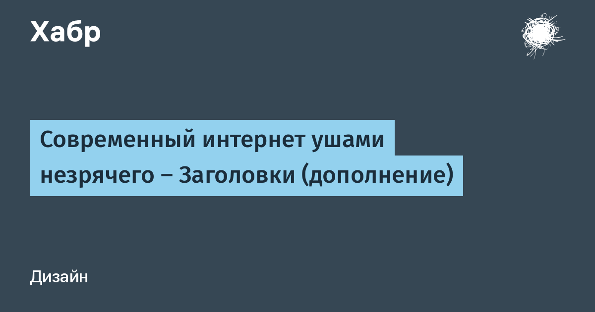 В этой статье я рассказывал повышении доступности сайта для людей с ограничениями по зрению при помощи HTML-заголовков. Насколько я понял, статья вызвала интерес у определённой категории читателей, в связи с этим я решил продолжить написание статей такой тематики и немного углубить тему «Заголовков». В этой статье я предлагаю читателю ознакомится с некоторыми удачными и не очень примерами использования заголовков на веб-страницах.
