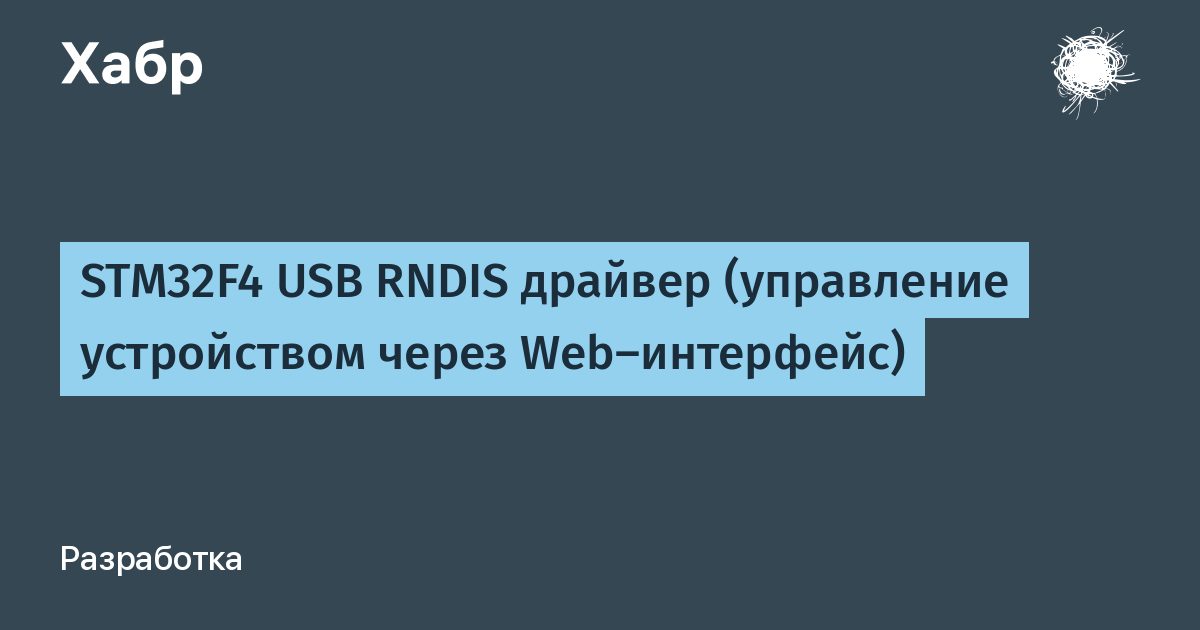 Ранее в статье была анонсирована разработка RNDIS USB драйвера для контроллеров серии STM32F4. С тех пор библиотека постепенно развивалась и нынче доросла до первой release-версии. Библиотека под названием LRNDIS (LWIP + RNDIS) позволяет нам создавать на базе контроллера STM32F4 как устройства класса USB «модем», так и любые другие устройства с управлением через web-интерфейс. Пример управления платой stm32f4-discovery из web-браузера на Android-планшете представлен на видео: