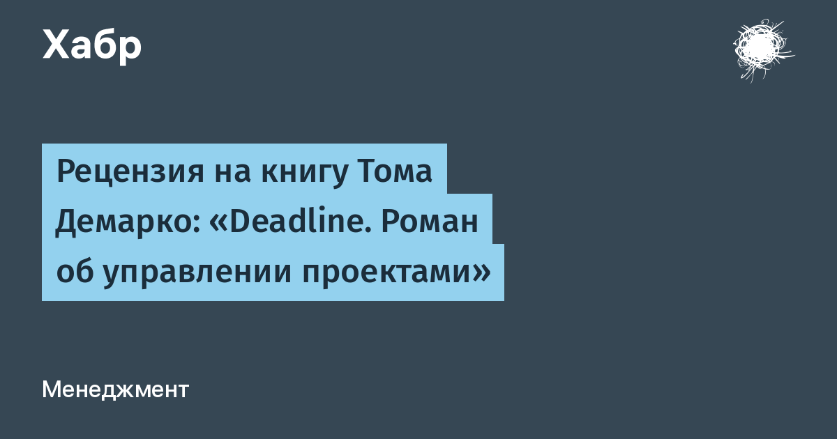 Эту книгу нужно читать тем, кто уже осоловел от работы менеджера проектов. В особенности тем, из кого работа сделала циника. Такие люди, когда берут в руки очередной учебник по менеджменту, думают: «Ну вот, опять этот бубнежь про ресурсы и риски». Про «Deadline» так не скажешь. Он забавный, вот правда.