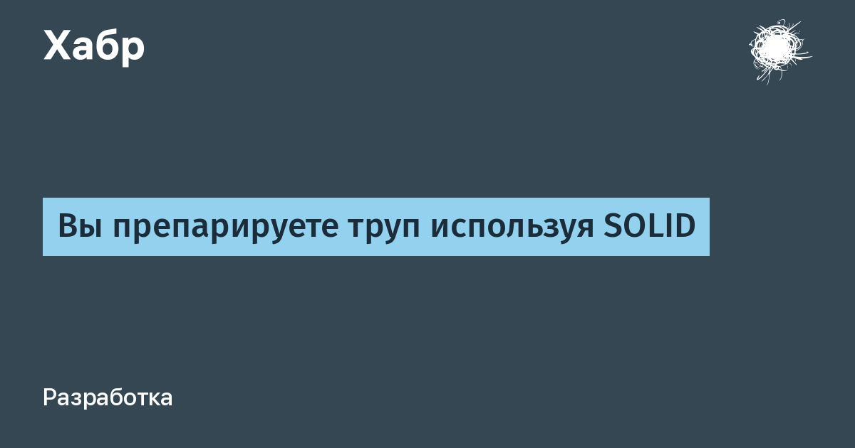 Начнем мы, как и положено, с самой слабой из парадигм «принципов SOLID», которые хорошо, что в граните не выбиваю. Приготовитесь много букв…