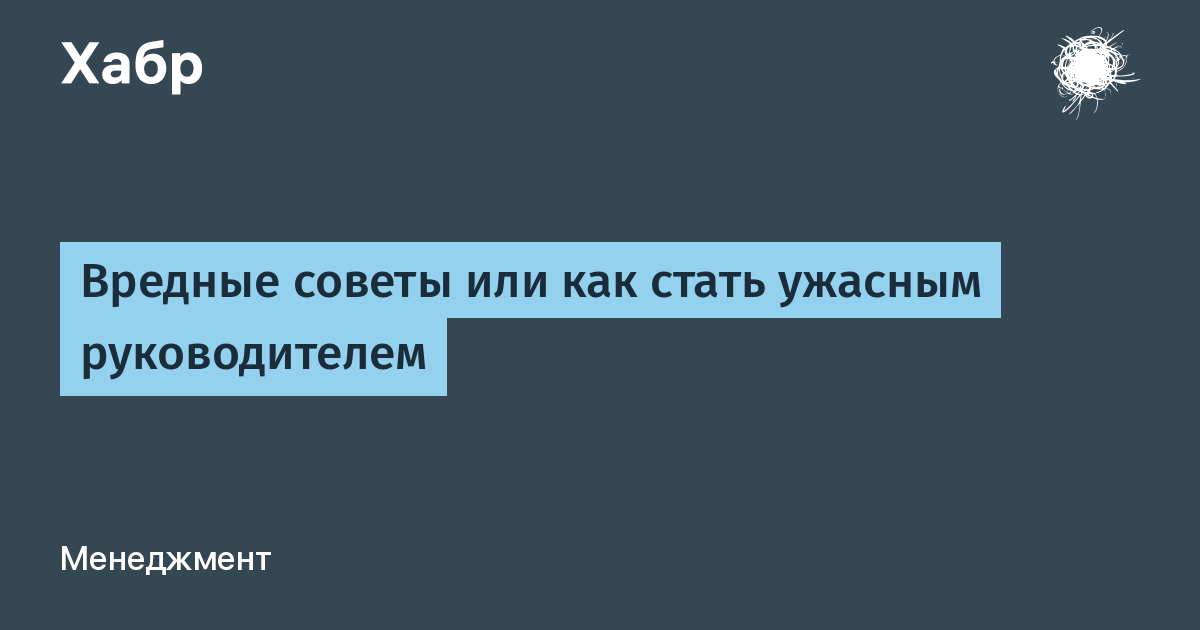 Сборник вредных советов, составленный по собственным ошибкам и ошибкам моих руководителей, а также руководителей друзей и знакомых.