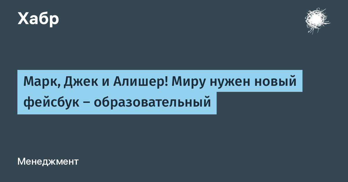 Марк Цукерберг, Джек Ма и Алишер Усманов, давайте начнем Исход из бедности. Начнем работу по созданию образовательного фейсбука. Сильные должны научить процветанию слабых. Быть первыми — полное сумасшествие, но может быть, поэтому имена первых переживают века. Марк, Джек и Алишер, отправляемся в путь?