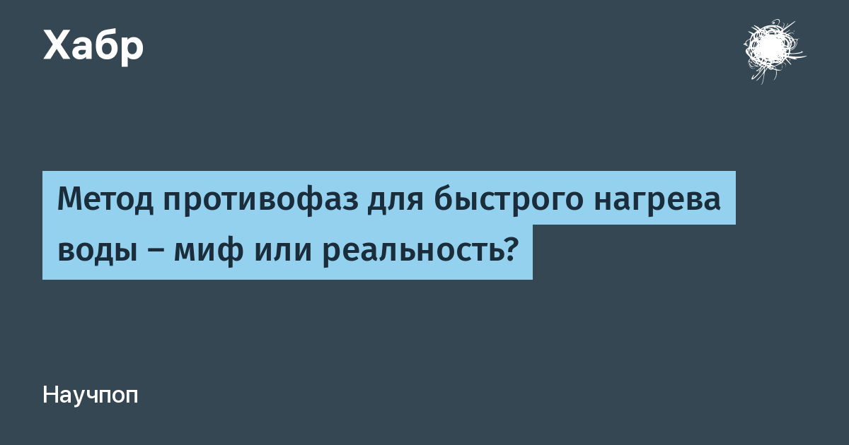 По мотивам этой публикации, раз уж там заговорили о больших емкостях и теплопередаче/теплопотерях…Имеем гипотетический чайник/бак/бойлер, в нем 2 спирали по 1 кВт. Если включить обе сразу, то содержимое вскипит за 10 минут (условно).