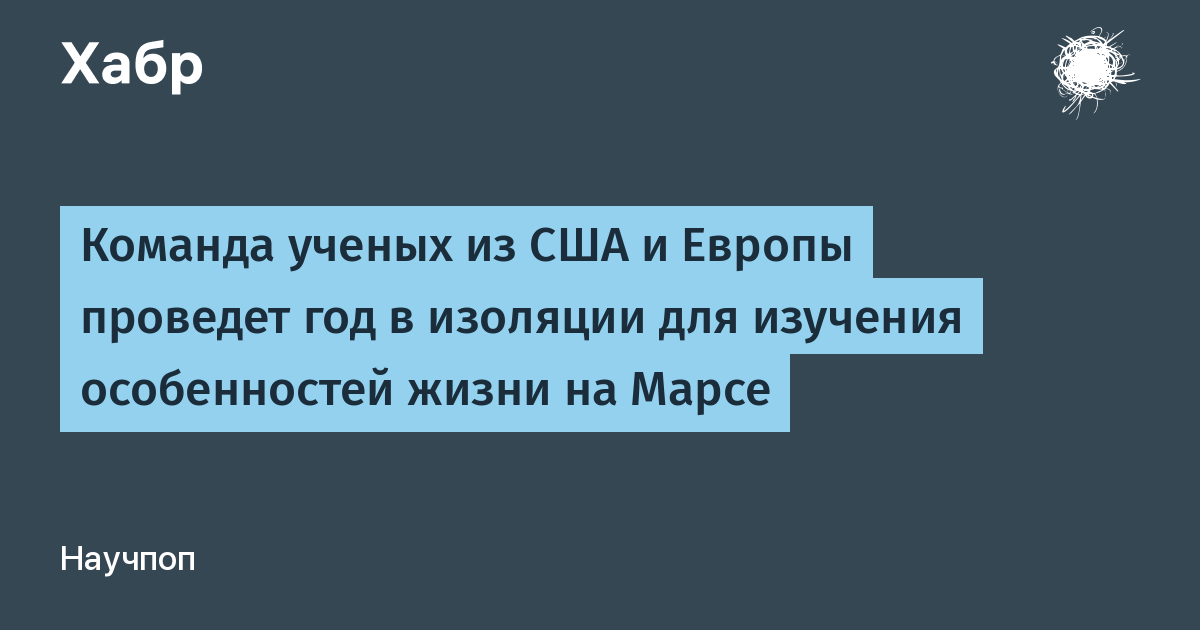 При этом время, которое добровольцы проводят внутри «марсианских» модулей, все увеличивается. Так, сейчас объединенная команда ученых из США и Европы должна провести в изоляции целый год для имитации полета на Марс. Всего добровольцев шестеро, а жить они будут на склоне спящего вулкана Мауна-Лоа на Гавайских островах. Пейзаж этого региона отдаленно напоминает то, что колонисты смогут видеть на Марсе.