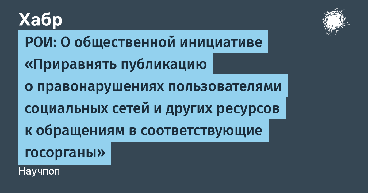 … почему бы не разработать специальный механизм, который позволит при публикации данных о правонарушениях, например, в том же Вконтакте, с парой специальных тегов, не приравнять к обращениям в соответствующие государственные органы.