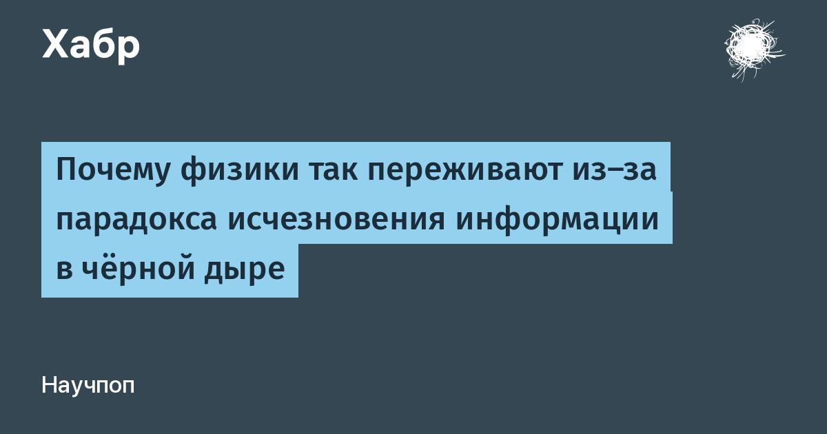 Такова другая причина, по которой физики так беспокоятся из-за исчезновения информации в ЧД: поскольку рассуждения на эту тему не ограничены экспериментальными, данными, по ней очень легко писать работы, и поскольку на эту тему работает так много людей, с цитатами тоже не бывает проблем.