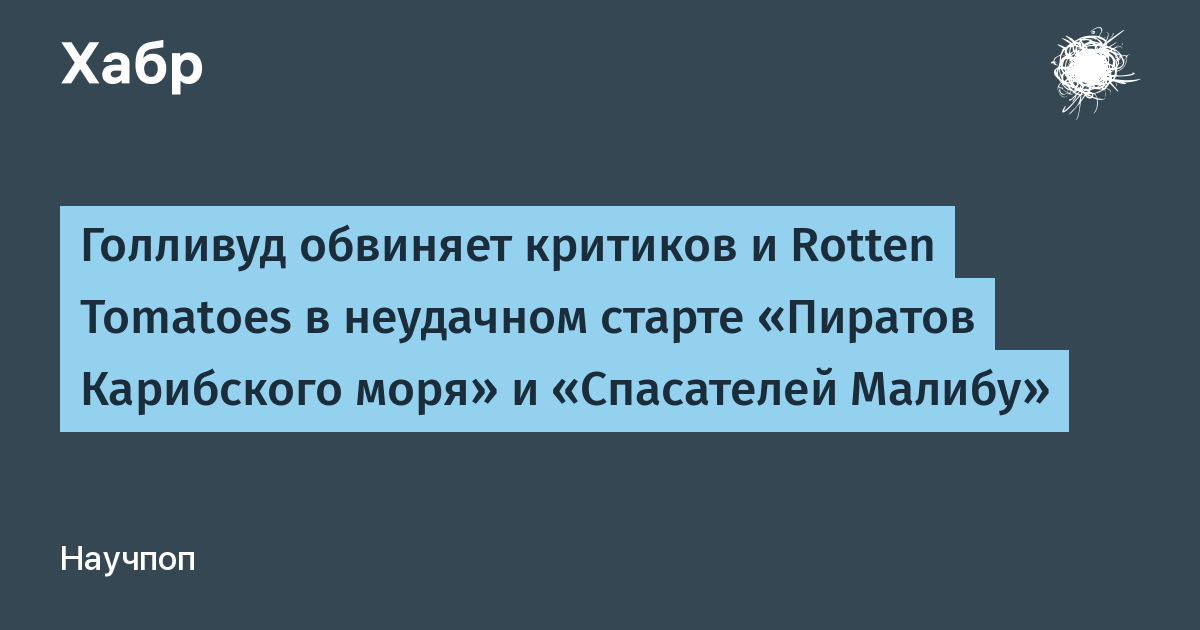 Что касается очередной части «Пиратов Карибского моря» и обновленных «Спасателей Малибу», то результаты первых дней проката оказались неприятным сюрпризом для воротил кинобизнеса. После того, как обе картины получили объем кассовых сборов ниже ожидаемого, руководители этих проектов начали искать виноватых. В этом нет ничего удивительного. Но почему-то они не винят себя, актеров, сценаристов, рекламщиков, которые обеспечивали раскрутку фильмов. Нет, в своей неудаче эти ребята обвиняют кинокритиков и блоггеров. Якобы потенциальные зрители читают необоснованно плохие рецензии в Сети и не идут в кинотеатры, из-за чего студии недополучают миллионы долларов.