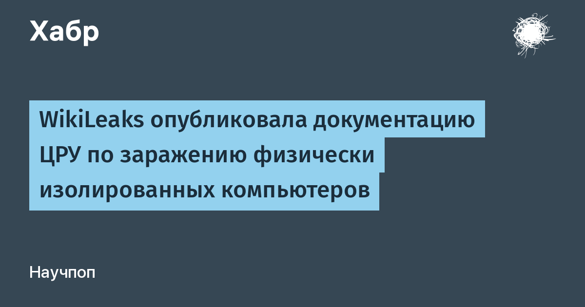 Физическая изоляция (air gap) — одна из мер обеспечения безопасности, когда защищённая компьютерная сеть физически изолируется от небезопасных сетей и интернета. В этом случае для компьютера снаружи сети нет никакой возможности установить связь с компьютером внутри неё. Для разведывательных организаций такие системы представляют определённую проблему. Во-первых, усложняется процесс установки шпионского программного обеспечения на такие компьютеры: нужно доставить на них флешку. Во-вторых, усложняется съём информации с заражённого компьютера, если он физически изолирован.