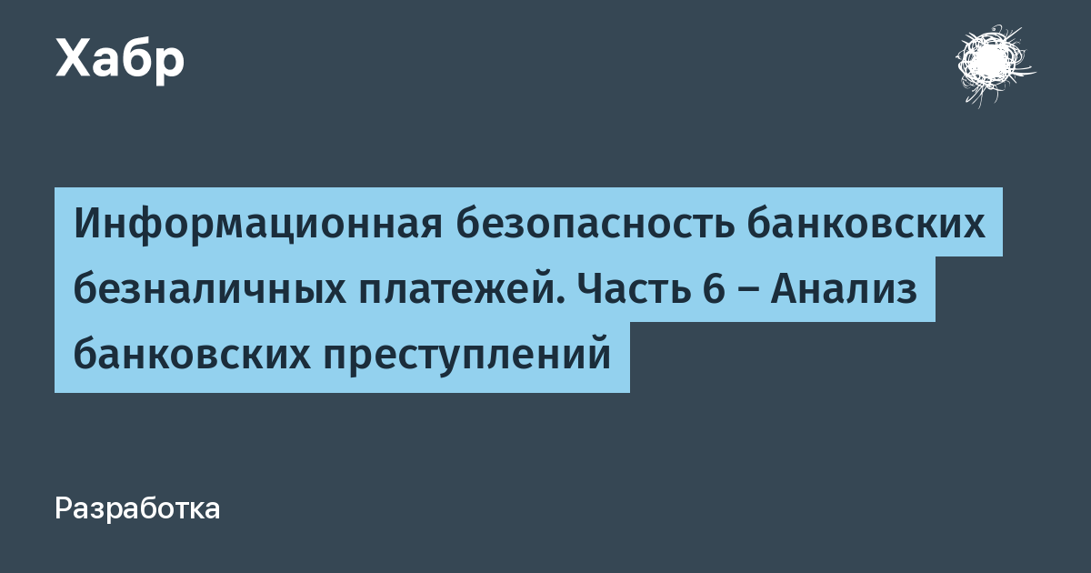 - Информационная безопасность банковских безналичных платежей. Часть 6 — Анализ банковских преступлений.(Вы здесь)