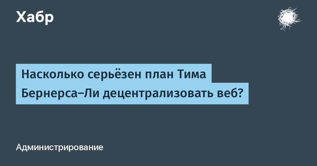 Интернет и почти бесплатное масштабирование цифровых технологий привели к сосредоточению слишком большой власти у нескольких компаний. Системы подотчётности не успевают за ними. Многообещающее противоядие — альтернативная децентрализация сетей, управления и контроля. Вот почему так радует, что изобретатель веба Тим Бернерс-Ли объявил о коммерческом предприятии для поддержки платформы Solid. Solid — это хранилище личных данных (PDS), которое передаёт управление в руки пользователя, а Inrupt — первое коммерческое предложение на этой платформе. Когда мы в 2013 году запустили проект Redecentralize, то очень немногие действительно заботились о децентрализации, а большинство вообще не думало об этом. Поддержка и одобрение Тима помогли изменить ситуацию.