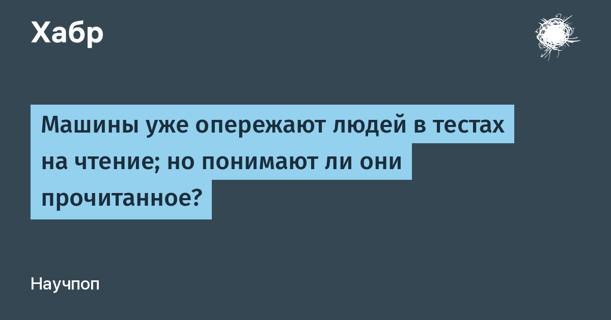 Недавно Боумен с коллегами представили тест под названием SuperGLUE, специально разработанный так, чтобы быть сложным для систем на базе BERT. Пока что ни одна сеть не смогла обогнать в нём человека. Но даже если (или когда) это случится, значит ли это, что машины смогут научиться понимать язык лучше, чем раньше? Или просто наука станет лучше обучать машины прохождению этого теста?