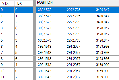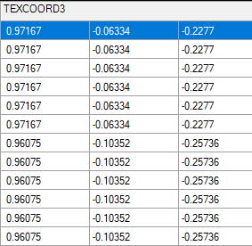 Кроме этого, меш имеет векторы нормалей и касательных. Также вершинный шейдер векторным произведением вычисляет вектор бикасательной — все три выводятся в нормализованном виде. Ещё присутствует повершинное вычисление тумана (его цвет и яркость).