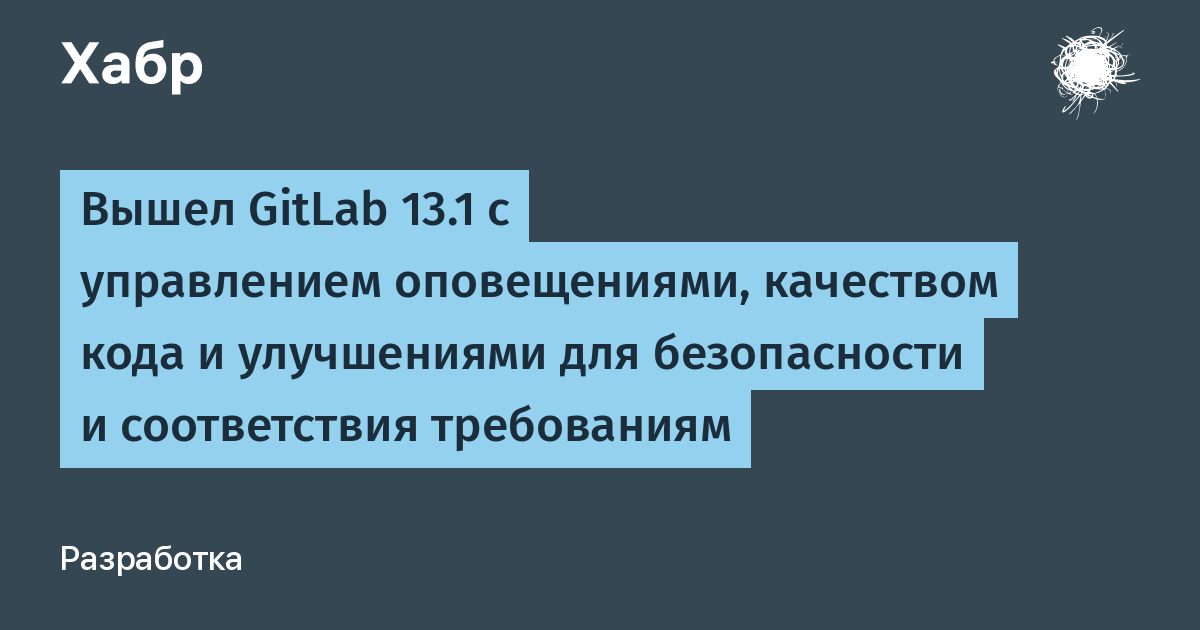 Релиз GitLab 13.1 уже доступен! Улучшения нового релиза включают расширенное управление уведомлениями и инструменты, которые помогут вам контролировать и улучшать качество кода, а также другие способы поддержания безопасности и соответствия вашего кода требованиям.