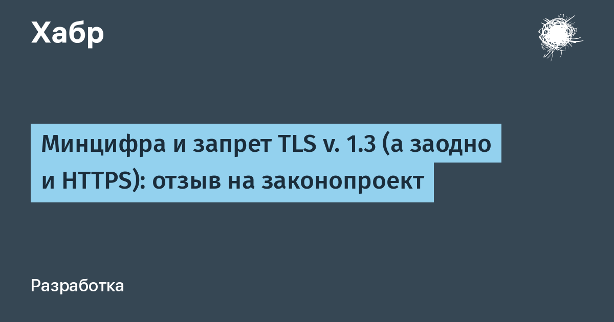 В прошлый раз мы писали о том, что Минцифра внесла на публичное рассмотрение законопроект, согласно пояснительной записке, запрещающий в России работу сервисов с технологиями сокрытия доменных имён — eSNI/ECH, а если брать шире, то и весь TLS v. 1.3, а согласно букве законопроекта — до кучи ещё и HTTPS вообще.