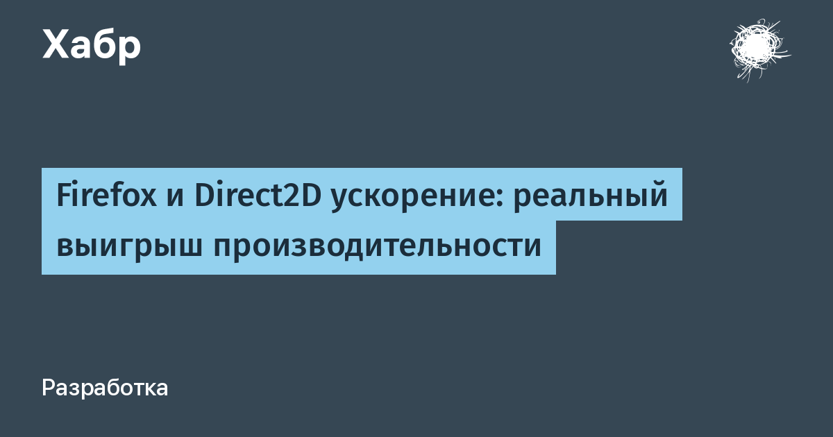 Итак, в конце ноября Bas Schouten опубликовал в своем блоге заметку о том, что он добавил в код браузера Firefox еще один графический бекенд, для работы с Direct2D. Direct2D — это новый API, призванный заменить давным давно устаревший и выкинутый из состава DirectX DirectDraw. Он работает в Windows 7 и Windows Vista, если ваш драйвер видео карты соответствует хотябы стандарту WDDM 1.0.