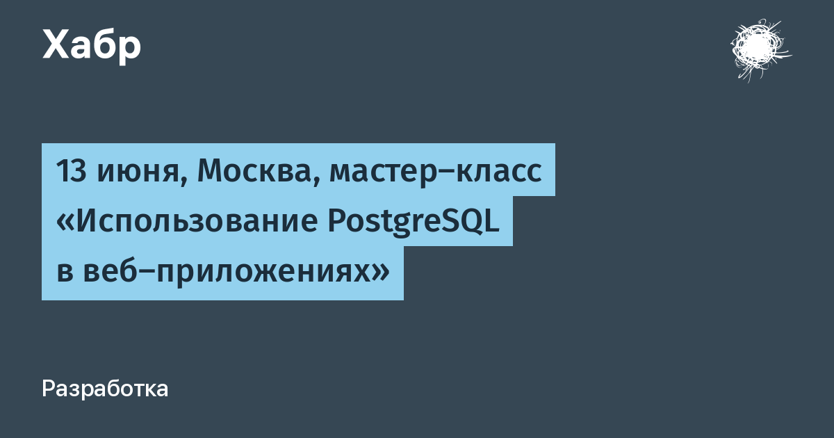 Приглашаем на мастер-класс по одной из лучших баз данных — PostgreSQL.