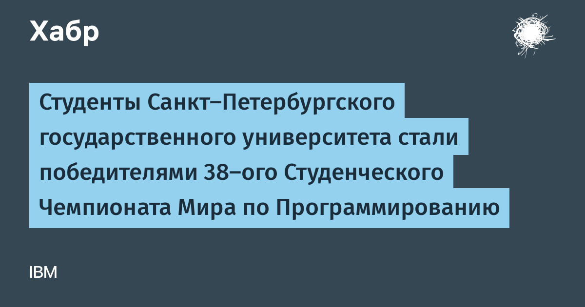 Трое студентов Санкт-Петербургского государственного университета стали победителями 38-ого Студенческого Чемпионата Мира по Программированию Ассоциации Вычислительной Техники (ACM-ICPC), глобальным спонсором которого выступает компания IBM. Самое престижное соревнование для программистов со штаб-квартирой в Университете Бэйлора (Baylor University), также известное как «Битва интеллектов» (Battle of the Brains), объединило 122 студенческие команды, которые всего за пять часов должны были справиться с несколькими сложнейшими задачами из реальной жизни.