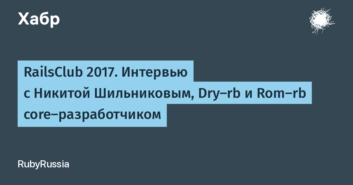 Отсчет до конференции RailsClub 2017 идет на дни, а мы продолжаем публиковать разговоры с нашими спикерами. Павел Аргентов расспросил Никиту Шильникова, разработчика Dry-rb и Rom-rb, о работе, книгах и состоянии дел в Ruby-сообществе.