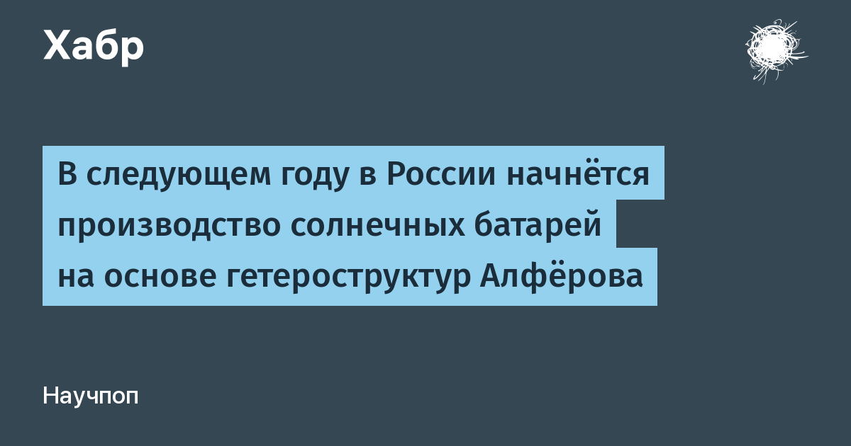 В 2016 году в России заработает производство солнечных панелей на полупроводниковых гетероструктурах. Разработчики обещают, что КПД таких панелей будет в два раза выше существующих, а стоимость – в два раза меньше. В разработке концепции принимал участие сам Жорес Иванович Алфёров, российский лауреат Нобелевской премии по физике, полученной за разработку полупроводниковых гетероструктур.