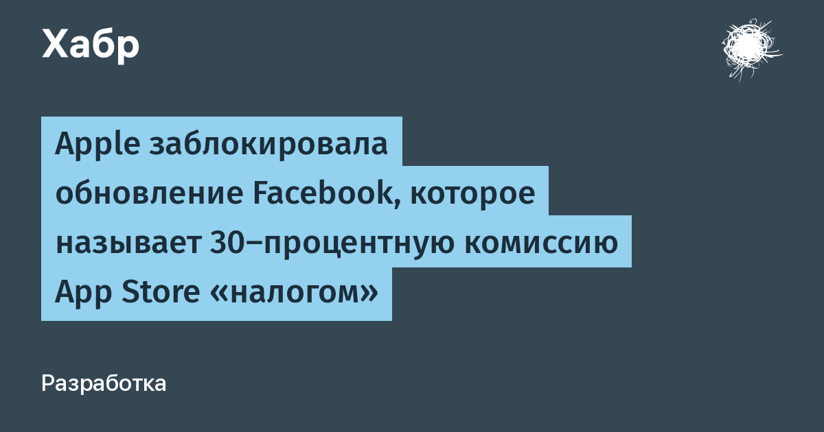 Apple не позволила Facebook рассказывать пользователям в мобильном приложении соцсети, что часть потраченных ими на встроенные покупки или пожертвования денег остается в качестве налога в App Store.