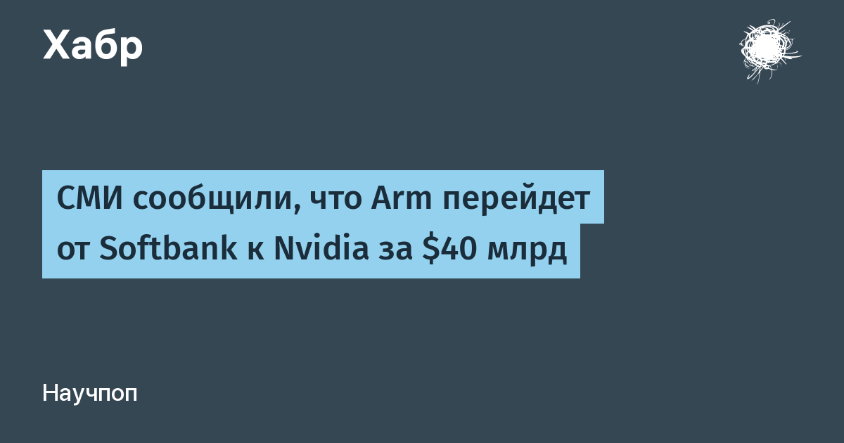 12 сентября 2020 года три издания (Bloomberg, The Wall Street Journal и Financial Times) сообщили, что Nvidia и SoftBank провели все необходимые переговоры. Ожидается, что в понедельник 14 сентября стороны объявят о переходе производителя микросхем Arm под контроль Nvidia. SoftBank получит за этот актив $40 млрд. Причем японская инвестиционная компания приобрела Arm в 2016 году примерно за $32 млрд.