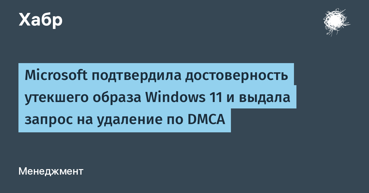 DMCA обращение от Microsoft: «Публикация Beebom.com распространяет Windows 11 ISO (авторские права принадлежат компании Microsoft). Пожалуйста, удалите их статью из поиска. Это утекшая копия еще не представленной Windows 11».