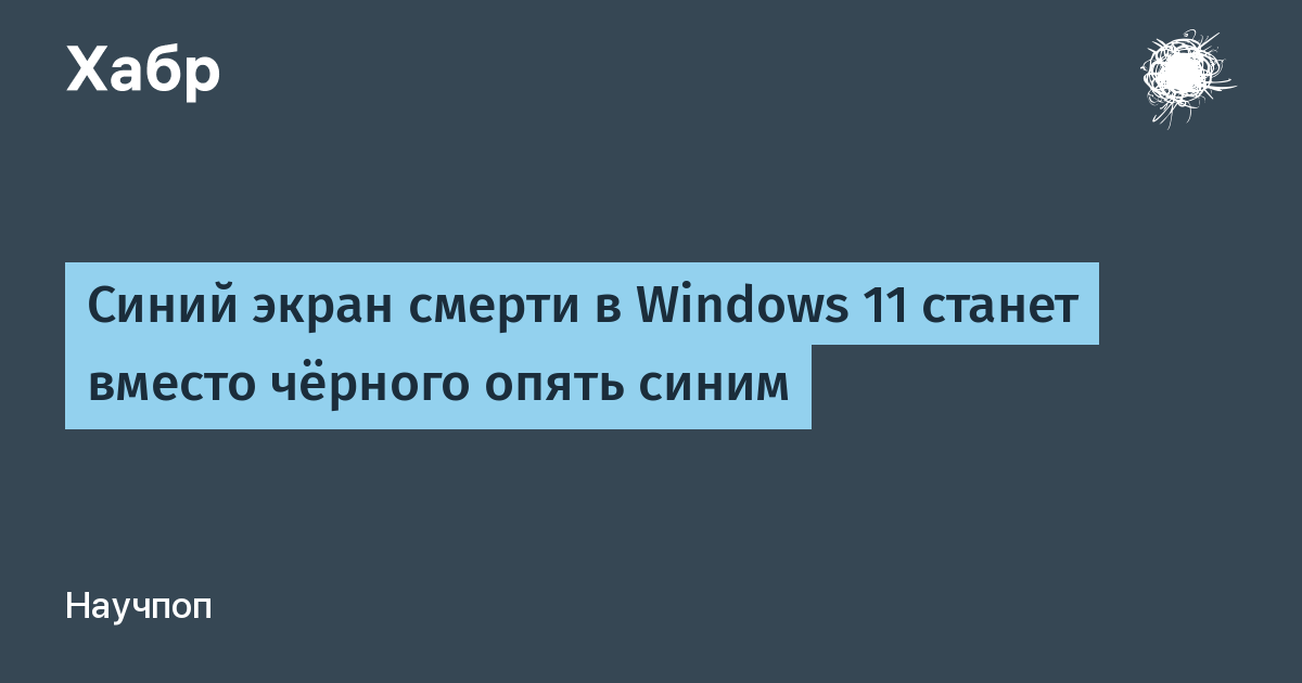 По информации Verge, Microsoft решила сменить цвет экрана смерти в Windows 11 и вернуться обратно на классический синий BSoD вместо текущего черного BSoD. Предполагается причина смена цвета экрана смерти — у сотрудников техподдержки этот цвет ассоциируется с цветом экрана выключения и запуска в Windows 11, а также с неполадками монитора. Им проще работать с синим цветом, который был в Windows 10.