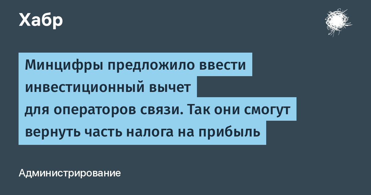 Минцифры России предложило распространить инвестиционный налоговый вычет на операторов связи. Так им могут вернуть часть налога на прибыль, что поможет сохранить качество связи, не привлекая дополнительного финансирования, считают в ведомстве.