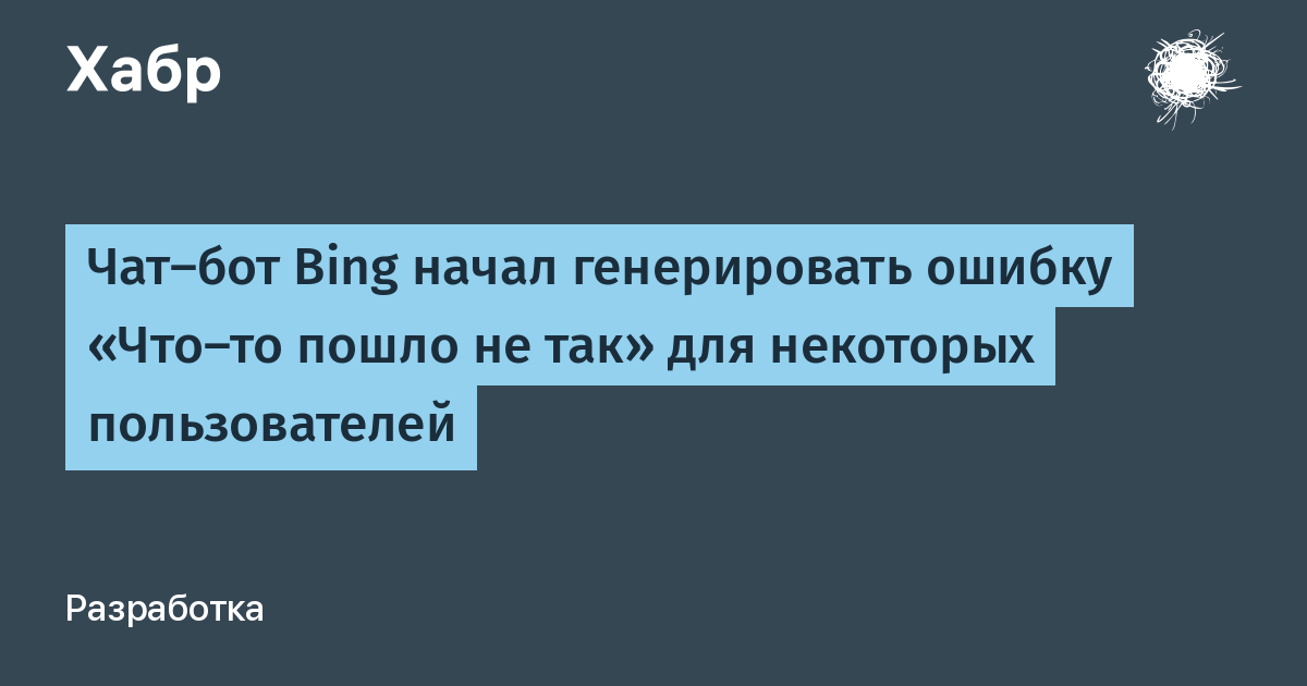 Продолжается тестирование нового чат-бота поисковика Bing от Microsoft. 1 марта некоторые пользователи начали получать от бота сообщение об ошибке с текстом «Что-то пошло не так». Microsoft заявила, что в курсе проблемы, которая, по-видимому, связана с наплывом пользователей.