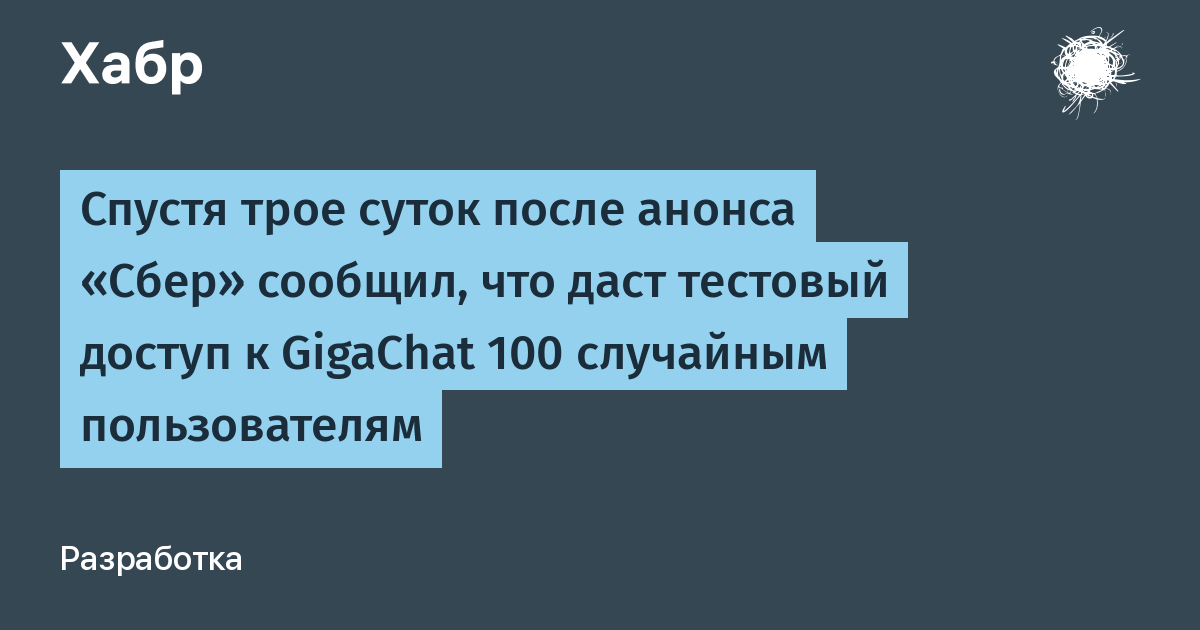 Спустя двое суток после анонса «Сбер» сообщил, что вот-вот даст тестовый доступ к своей нейросети GigaChat через бота GigaChat_Test_bot в Telegram, но только 100 случайным пользователям.