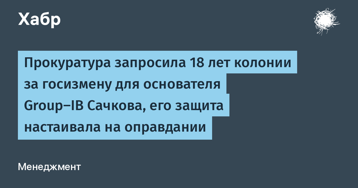 21 июля СМИ сообщили, что прокуратура запросила на суде 18 лет колонии по делу о госизмене для основателя Group-IB Ильи Сачкова, его защита настаивала на оправдании. Приговор Сачкову будет оглашён 26 июля. Процесс в отношении основателя Group-IB проходит в Мосгорсуде в закрытом режиме, поскольку материалы уголовного дела засекречены.