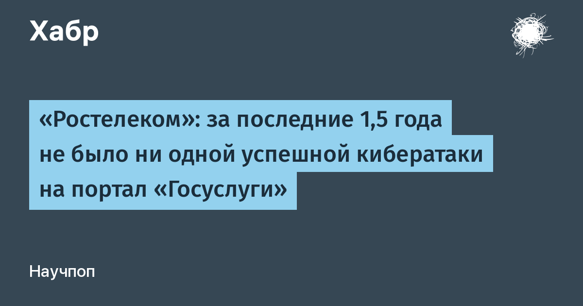Вице-президент компании «Ростелеком» по информационной безопасности и гендиректор ГК «РТК-Солар» Игорь Ляпунов рассказал СМИ, что за последние 1,5 года не было ни одной успешной кибератаки на портал «Госуслуги».