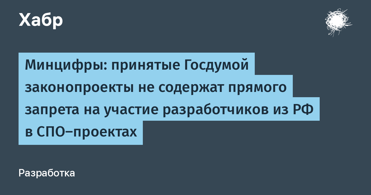 Минцифры пообещало подготовить разъяснения по этой ситуации, чтобы снизить эффект на IТ-отрасль и подтвердить официально, что разработчикам из РФ всё же можно делать в рамках сотрудничества с коллегами и СПО-проектами за рубежом то же самое, что они делали ранее и без ограничений, но теперь с условием соблюдения новых законов.