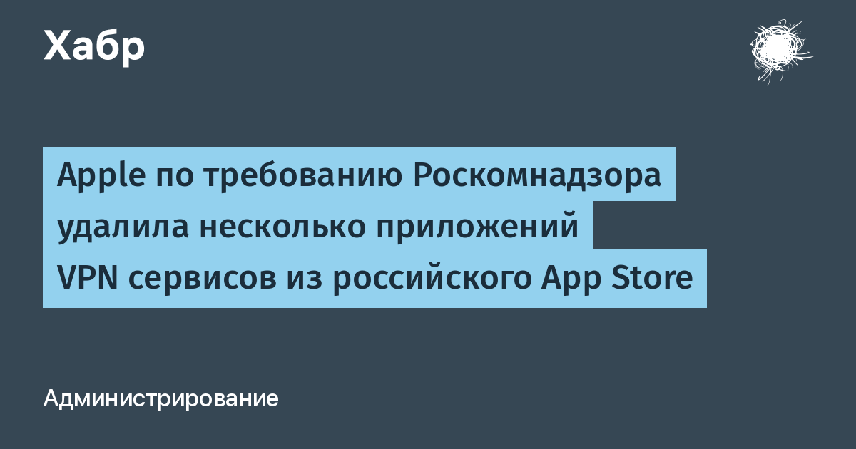 Apple удалила из российского подразделения магазина AppStore несколько приложений сервисов VPN, которые используются для обхода блокировок.