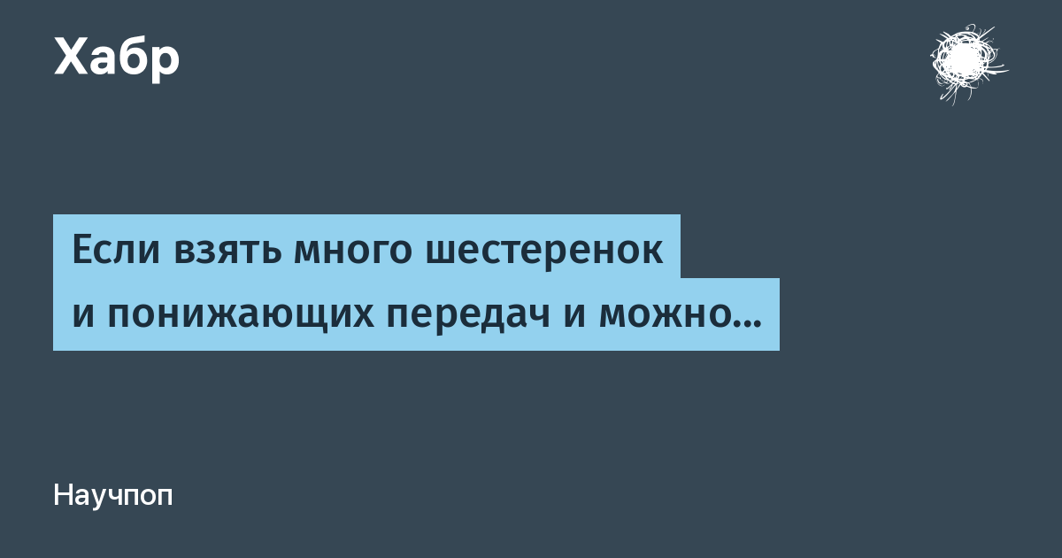 Если взять много шестеренок и понижающих передач и можно соорудить механизм, которому потребуется чудовищное время на один цикл работы. Например здесь мотору нужно совершить буквально googol оборотов, чтобы единожды провернуть последнюю шестерню. А эта машина по расчетам автора, совершает полный цикл работы за 5.2434e91 лет (даже не знаю, сколько это). Чертова экспоненциальная магия.