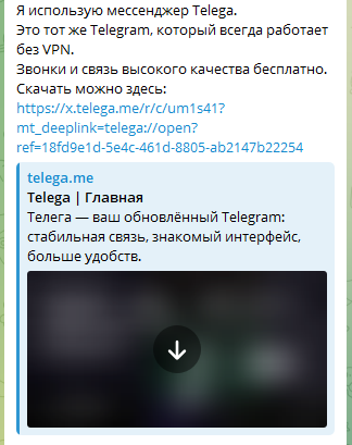Бытует мнение, что блокировка официального Телеграма - хороший предлог для переезда в Телегу.