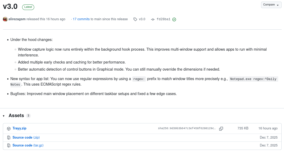 19 февраля 2026 года состоялся релиз проекта Trayy 3.0. Это небольшое открытое приложение для ПК на Windows 10/11, которое расширяет возможности системного трея. Исходный код решения написан на C++ и опубликован на GitHub под лицензией AGPL-3.0. Разработчики утилиты вдохновлялись проектом RBTray (RBTray SourceForge project page). Выпуск Trayy 1.0 состоялся в начале мая 2025 года. В сентябре 2025 года вышел Trayy 2.0.