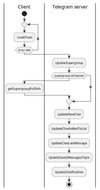 Как уже было отмечено выше, для реализации хранения структуры чатов пользователей нам будет необходимо обработать два сообщения: updateSupergroup и updateNewChat. Так как информация о супергруппе будет использована в момент обработки события updateNewChat, обработка самого события updateSupergroup сводится к получению полной информации о супергруппе с помощью вызова функции getSupergroupFullInfo и кэширование этих данных для анализа в обработчике updateNewChat.