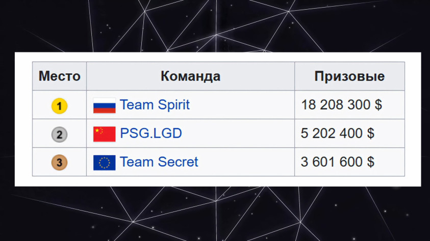 Для примера: в 2021 году за первое место там выплачивали около 18 миллионов долларов, которые затем распределялись между всеми членами команды.