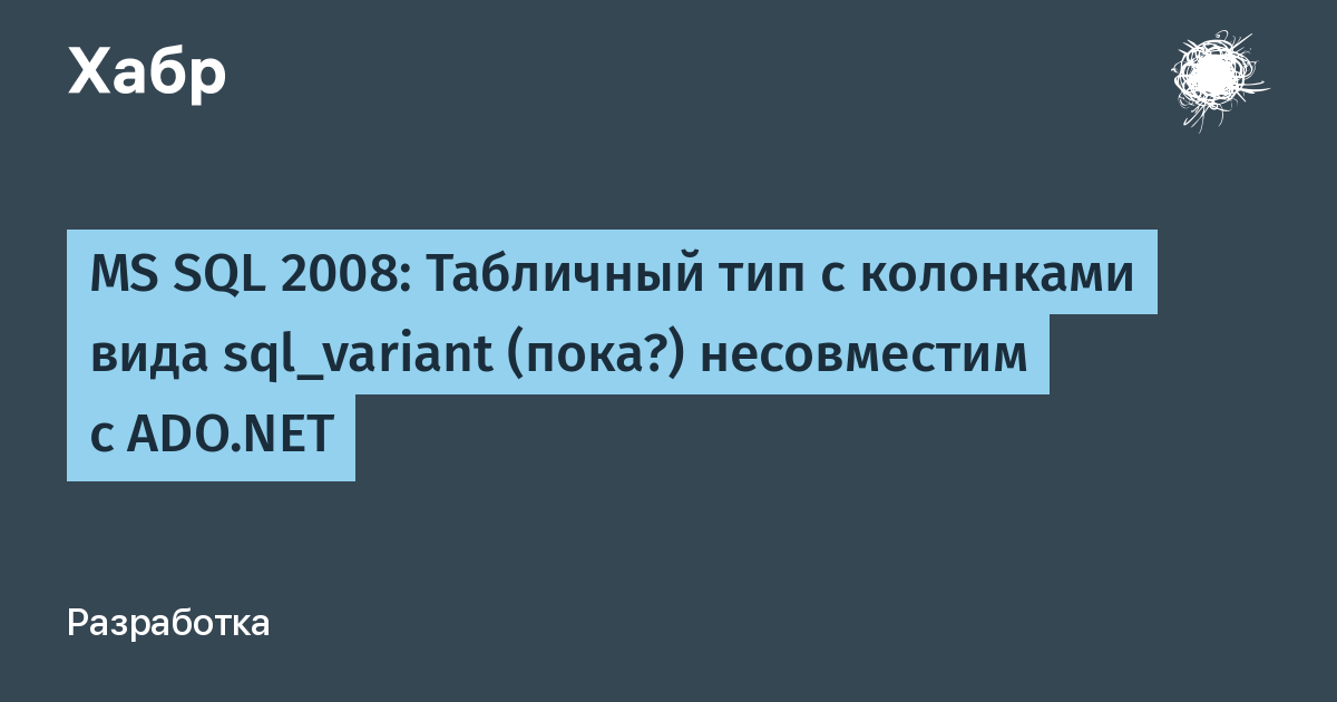 - Отказаться от использования sql_variant в пользу xml-структур;