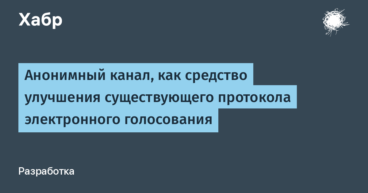 Воспользуемся анонимным каналом, который представят из себя улучшенный анонимный канал Шаума. Подробнее о нем можно почитать здесь.